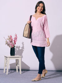 Hand-Embroidered Chikankari Pure Cotton Top Pink - L
