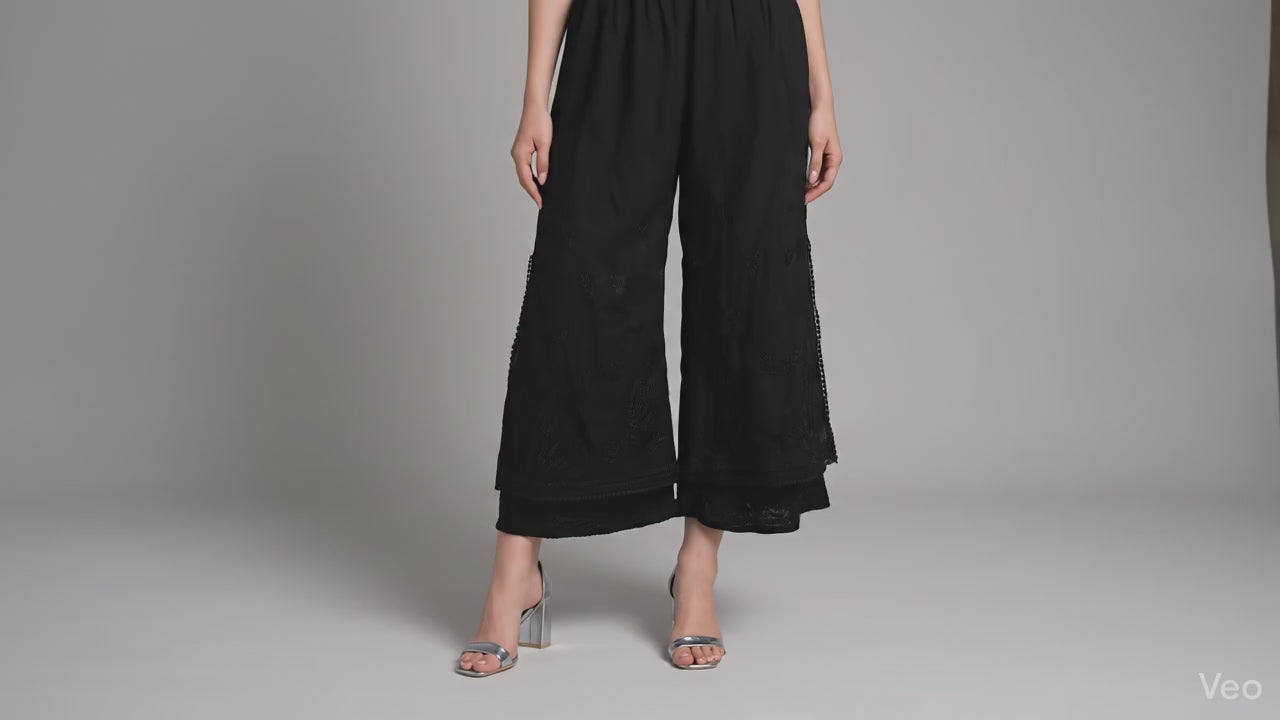 Chikankari Hand Embroidered Layered Palazzo Cotton Black