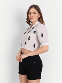 Lucknow Chikankari Hand Embroidered Crop top Cotton - XXS